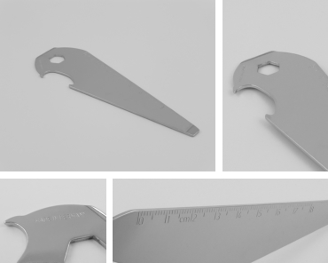 LACKDOSENÖFFNER / VERFBLIKOPENER NR. 7292-E Maße / Material:		ca. 13,2 cm, Edelstahl Funktionen:			Farbdosenöffner / Lackdosenöffner, 3 verschiedene Öffner für Farbdosen,  10-er Schlüssel, Lineal mit cm oder inch, Flaschenöffner   MADE IN SOLINGEN/GERMANY zurück zurück vor vor